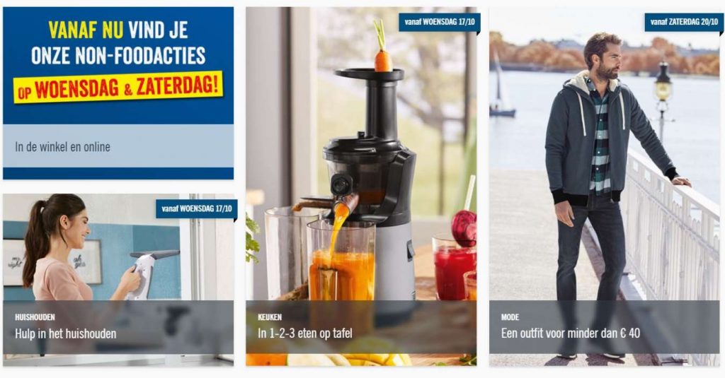 Het is een opmerkelijke wijziging die de discounter aankondigt in zijn folder, website en Facebookpagina: non-foodpromoties vinden klanten voortaan op woensdag en zaterdag online en in de winkels. Daarmee zet Lidl zich op dezelfde lijn als concurrent Aldi, die al langer zijn non-foodacties op deze dagen lanceert. Maar dat is niet de voornaamste beweegreden, verklaart Lidl-woordvoerster Isabelle Colbrandt.