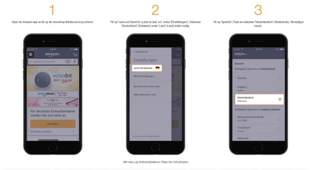 Amazon heeft het Nederlands toegevoegd als taal voor de Duitse mobiele app. Dat wil zeggen dat Nederlandstalige consumenten nu eenvoudiger hun weg moeten kunnen vinden via de app. Momenteel is wel nog niet alles vertaald.