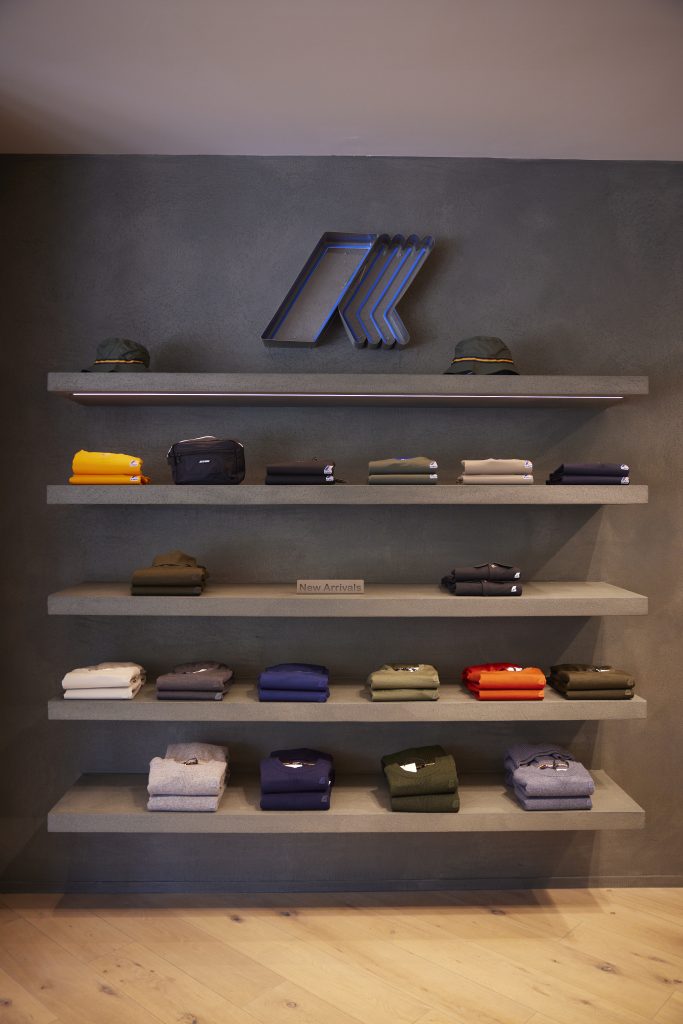 De winkel aan de Kustlaan 67 wil een “levendig, eigentijds winkelconcept” naar Knokke brengen, met een ontwerp dat eer betoont aan de bekende wind- en regenjassen van het merk. In de inrichting is gekozen voor een mix van kleurrijke materialen en verlichting.