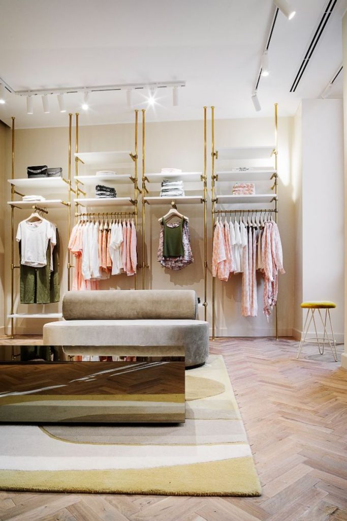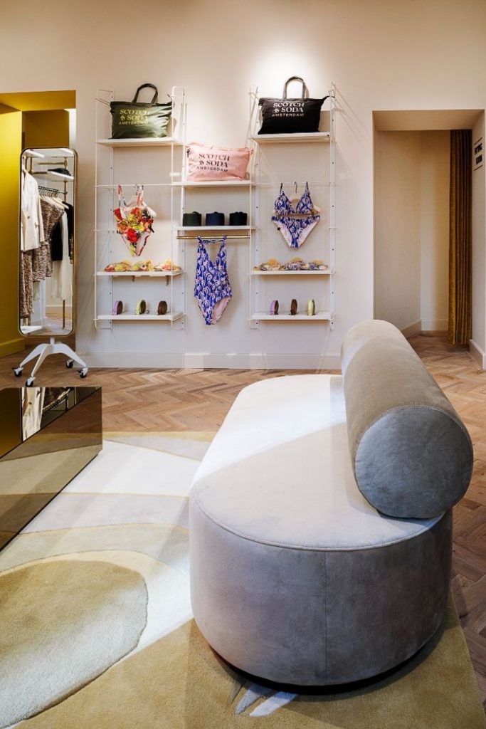 Het winkelconcept van de vestiging heet ‘Free Spirit’ en is nieuw sinds maart vorig jaar. Warme kleuren worden er gemengd met strak meubilair en design, en duurzame elementen zoals ledverlichting. Op een digitaal scherm worden de actuele collecties van het merk getoond.