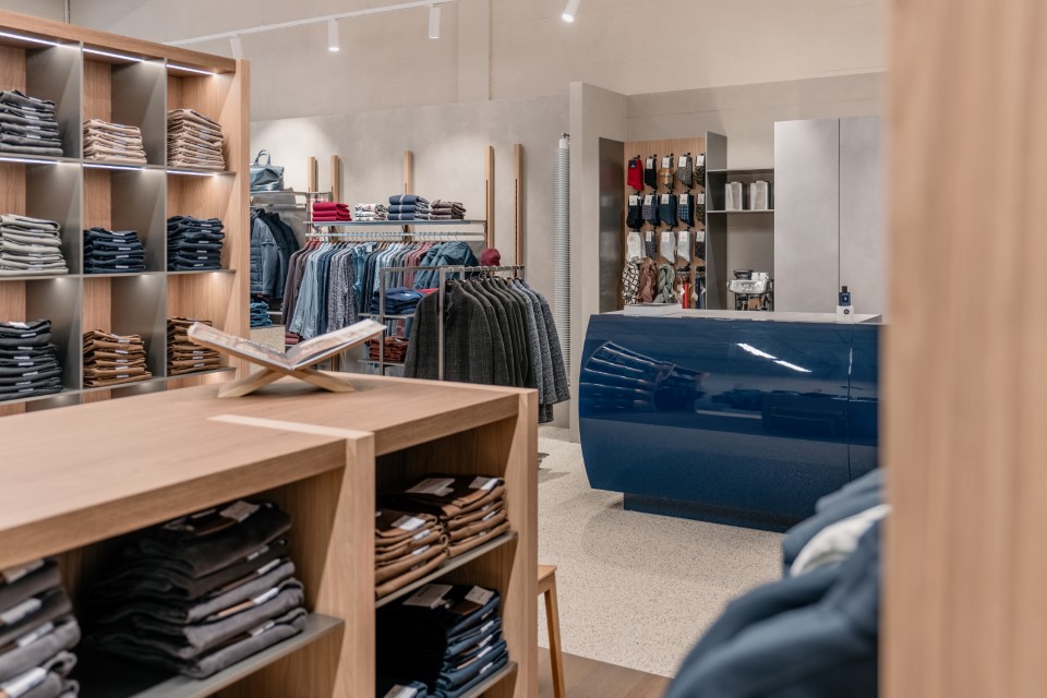 Achter ieder detail schuilt een doordachte verwijzing naar de rijke historie van het bedrijf. De winkelindeling baseert zich op de rijen breimachines die ooit in de fabriek in Lichtenvoorde druk ratelden. Ook de speciaal ontworpen hanglamp met de unieke vloeiende structuur van garen hint naar het weefgetouw van de breimachines. De kassa heeft het kenmerkende lak- en lijnwerk van een Porsche, de grote passie van oprichter Albert Westerman.