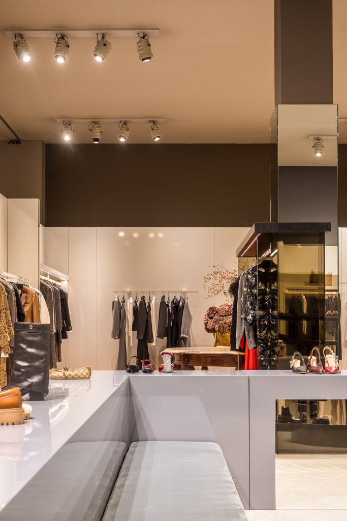 Interieurarchitect Merijn Degraeve transformeerde de monumentale ruimte in een intieme omgeving. “Ik wilde van deze hoge, indrukwekkende ruimte een intieme plek maken waar klanten in alle comfort kunnen ontdekken en ervaren”, zegt Degraeve. “Het moest luxueus zijn, maar tegelijk uitnodigend en gezellig – een setting die Verso’s modeaanbod maximaal laat stralen.”