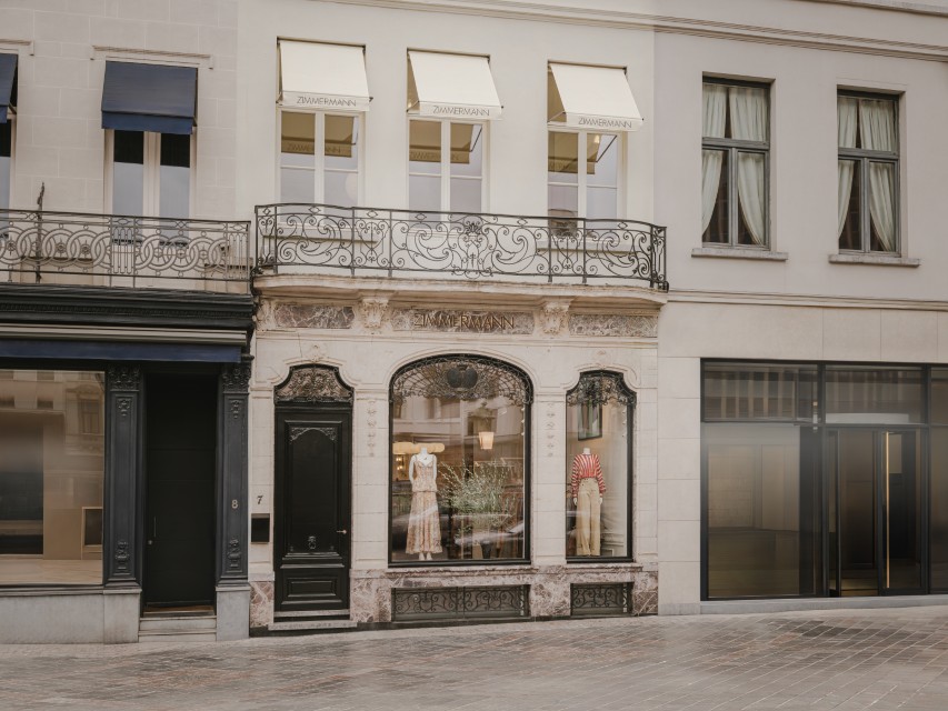 De nieuwe Zimmermann boetiek opende logischerwijs aan de Waterloolaan, in het hart van het belangrijkste luxewinkelgebied van de Belgische hoofdstad. De ruime winkel, ingericht door Studio McQualter, strekt zich uit over twee verdiepingen in een pand met een historische gevel.