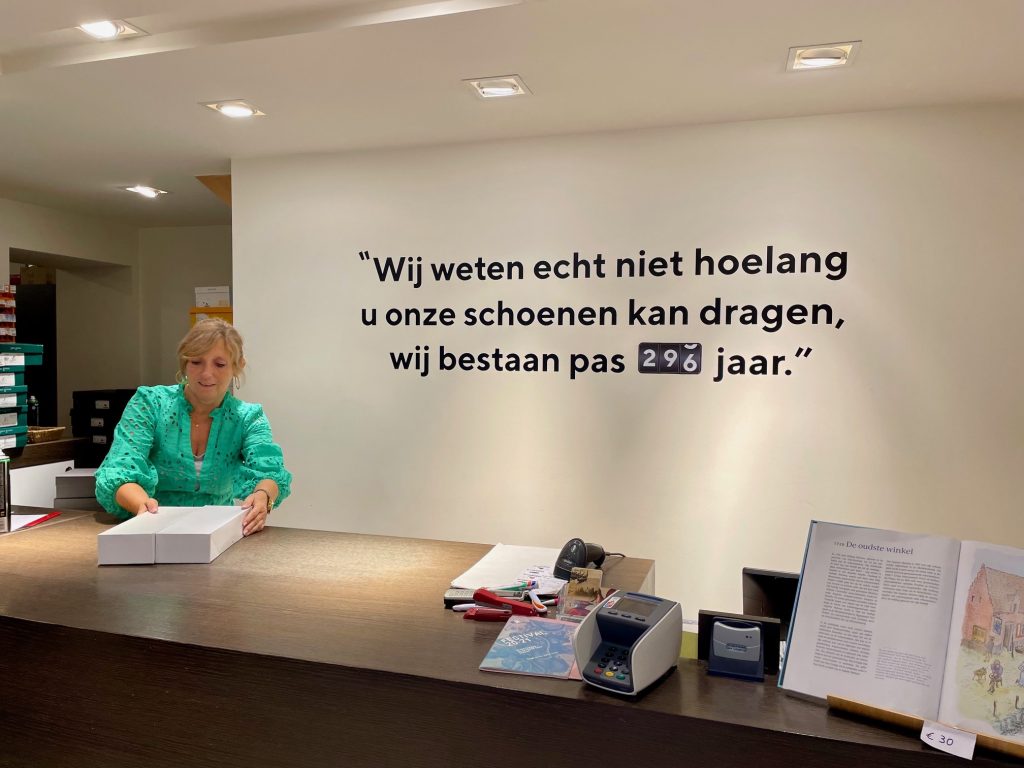“Wij weten echt niet hoelang u onze schoenen kan dragen, wij bestaan pas 296 jaar”: het opschrift achter de kassa van Mertens Schoenen in Leuven is zo’n beetje een running gag geworden – elk jaar passen Isabelle Mertens en Erik Meulemans het getal aan, de driehonderdste verjaardag nadert. De uitbaters maken zich sterk dat Mertens wel degelijk de oudste familiezaak en schoenwinkel is van België: “De sporen gaan terug tot 1728. Tot nu toe heeft niemand ons tegengesproken,” lachen ze. “We zijn intussen aan de achtste generatie.”