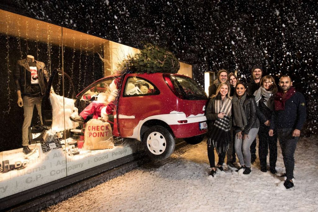De nieuwe etalage wekt de illusie dat de Kerstman door plotse sneeuwval met zijn auto van de weg is geraakt en de vitrine van de winkel is binnengereden. De voorkant van de knalrode auto steekt in de winkel, terwijl de achterkant nog over het voetpad hangt. “Om dit effect te verkrijgen, hebben we een volledige auto in de helft gesneden, en aan beide zijden van venster geplaatst. Sneeuwmachines zorgen voor extra beleving”, klinkt het bij Check Point.