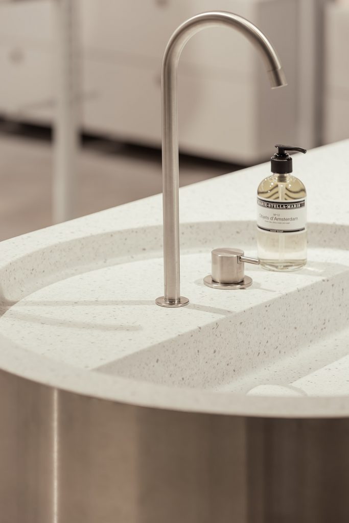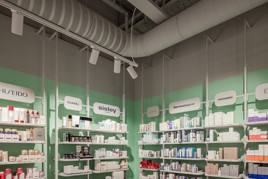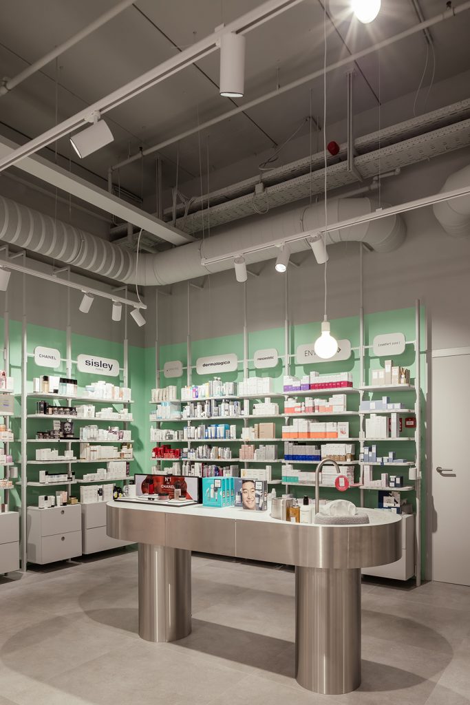 Het interieurconcept werd bedacht door interieurdesignbureau Puur, in samenspraak met het Parfuma-team. Het is een modulair ontwerp: de displayrekken, de balie, de verzorging- en make-upcorners staan doorheen de ruimte, in verschillende zones. Blikvangers zijn de doorlopende led-tube aan het plafond en de massieve ronde zuil bij de ingang die als wastafelmeubel dienst doet.