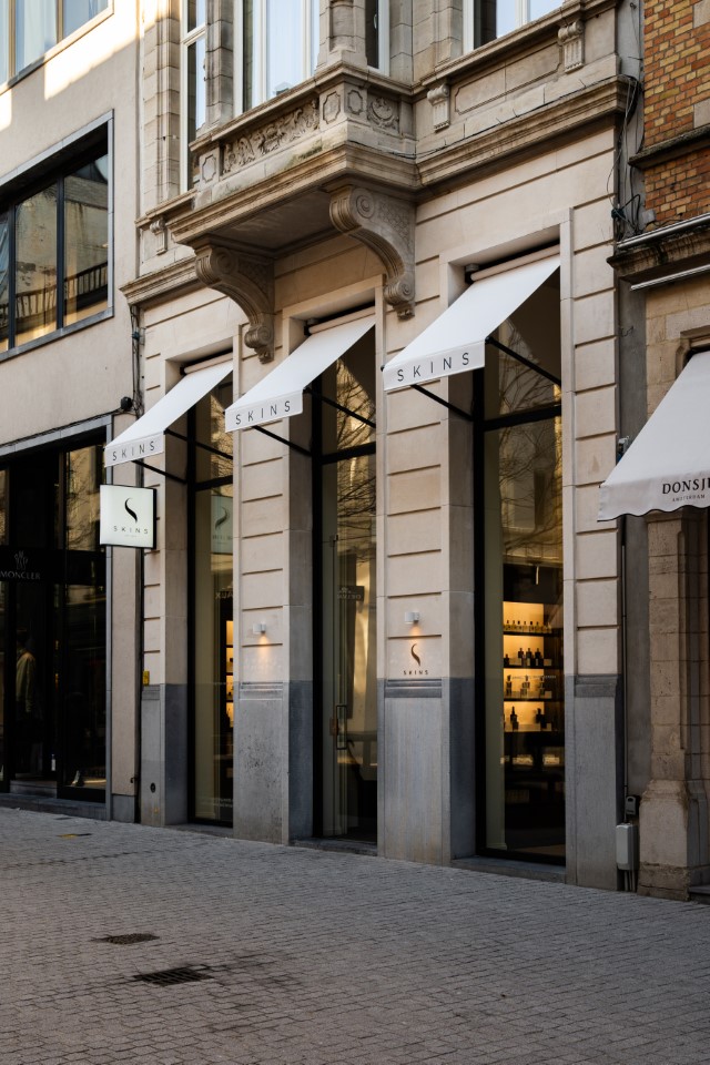 Voor Skins opende is het de eenentwintigste vestiging, maar pas de tweede Belgische. Het luxecosmeticamerk koos voor de Schuttershofstraat, de zopas heraangelegde winkelstraat waar prestigieuze merken thuis zijn.