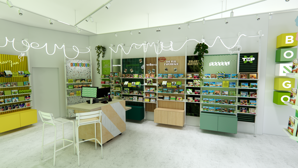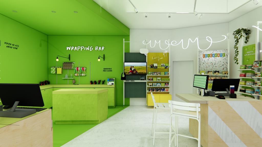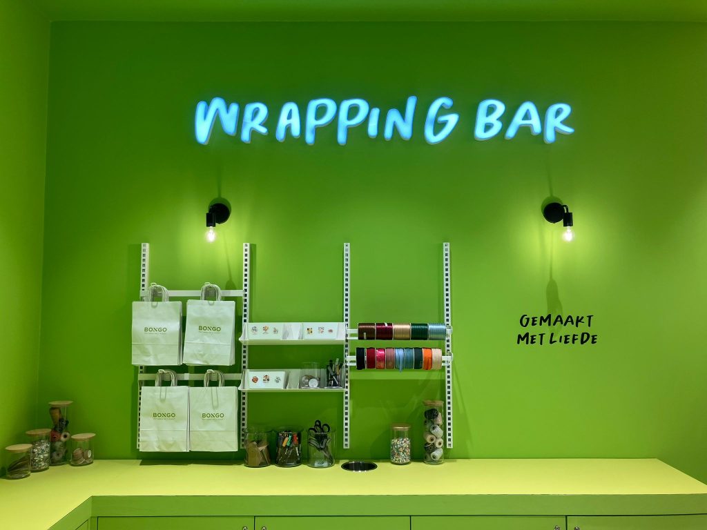 De klant krijgt hulp van interactieve kiosken en medewerkers om het juiste geschenk te kiezen, afgestemd op de ontvanger. In zes eenvoudige stappen – van ‘voor wie is het cadeau?’ tot ‘welke ervaring past het best?’ – leidt de kiosk shoppers snel naar een passende selectie. De blikvanger van de nieuwe winkels is de Wrapping Bar, waar klanten hun geschenk kunnen omtoveren tot een klein kunstwerk, met stijlvolle papiersoorten, linten, stickers, naamkaartjes en handgeschreven boodschappen.
