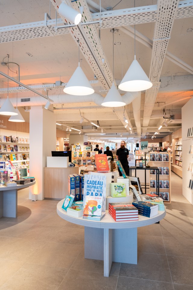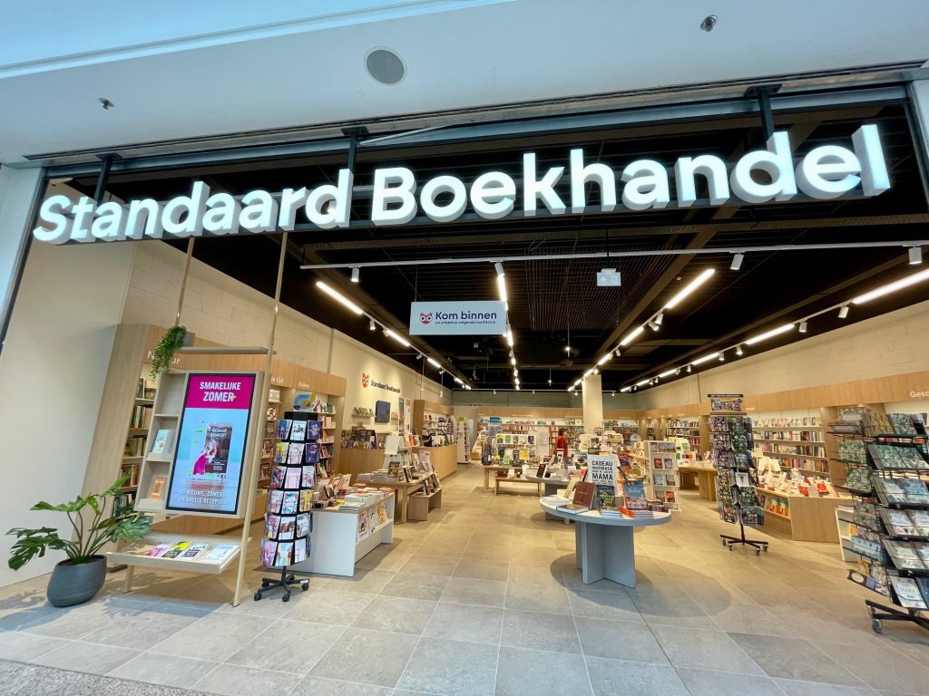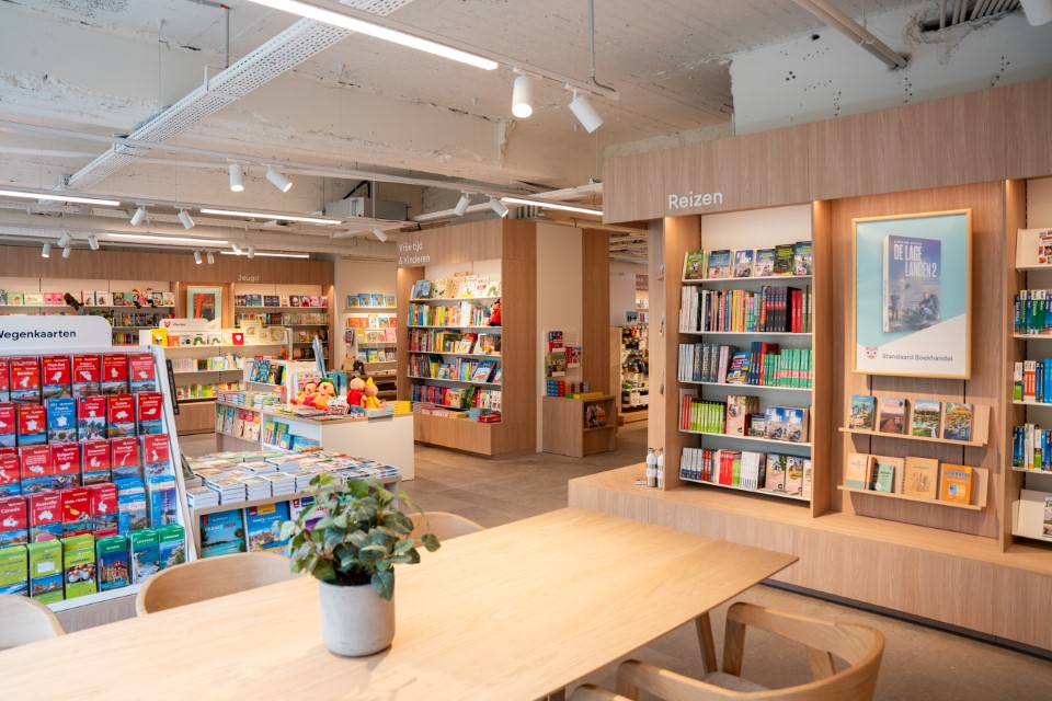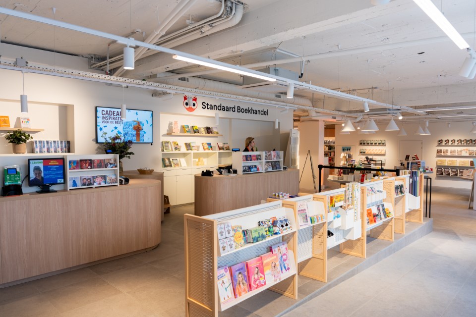Ook in het assortiment en in het winkelconcept neemt het boek weer nadrukkelijker zijn centrale plaats in, zowel in de etalage als op de tafels in de winkel. Standaard Boekhandel koos voor een warme, huiselijke, hedendaagse stijl. We zien een tafeltje met zeteltje, lamp en planten in het uitstalraam, maar ook prominente beeldschermen, vooraan en achter de kassa: de retailer omarmt het digitale.