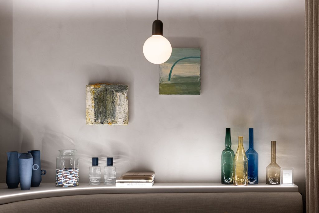 Zelfs de moeilijkheid van het pand bleek uiteindelijk een zegen voor het concept: om de kracht van de kunstwerken naar voor te laten komen, heeft elk werk eigenlijk een eigen compartiment nodig. De steunbalken werden getransformeerd tot cirkels die het geheel een golvende beweging geven en bezoekers steeds dieper naar binnen lokken. “Zelfs de muren zijn zo een experience geworden”, lacht de Caluwé.
