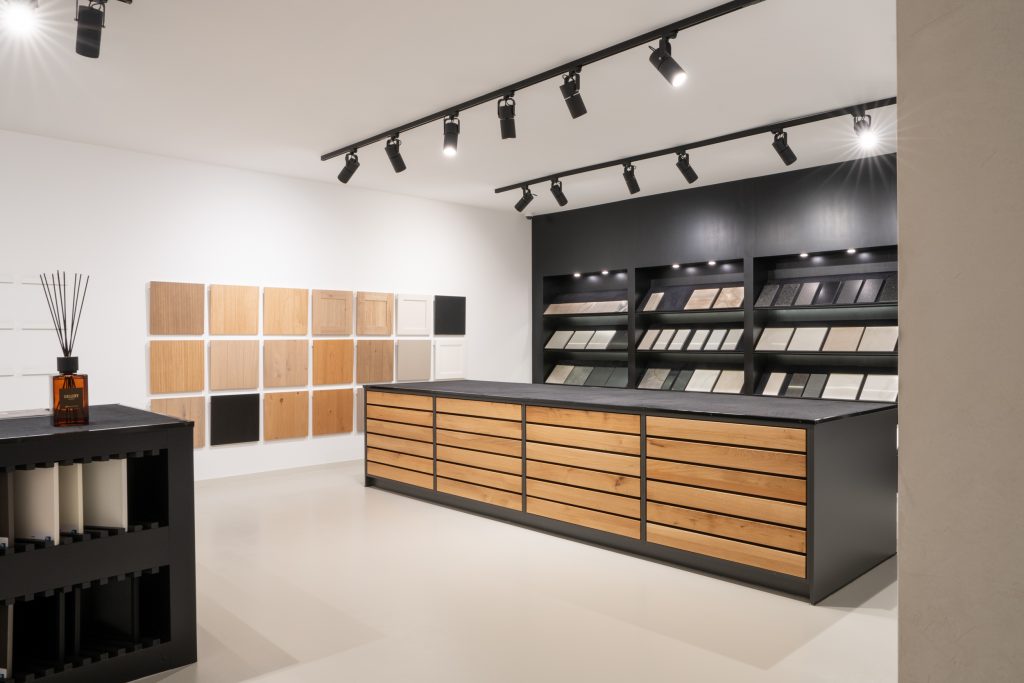 Fysieke toonzalen blijven essentieel in het verkoopproces: klanten kunnen hier de verschillende stijlen en materialen vergelijken en advies van goed opgeleide verkopers begeleidt verbouwers naar de juiste keuken en de beste opstelling. “Mensen komen hier soms binnen met beelden die ze op Pinterest hebben gezien. Onze interieurarchitecten gaan daar dan mee aan de slag. Ze denken mee en kijken daarbij ook naar verlichting, afwerking van muren en vloeren, ergonomie…”